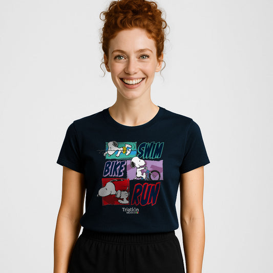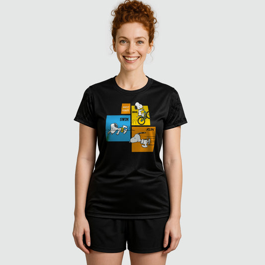 PLAYERA SNOOPY TECH TRIATLON NEGRA DAMA