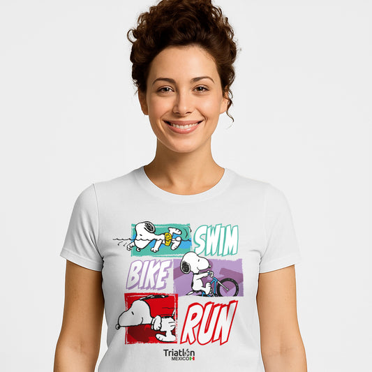 PLAYERA SNOOPY TECH TRIATLON BLANCA DAMA