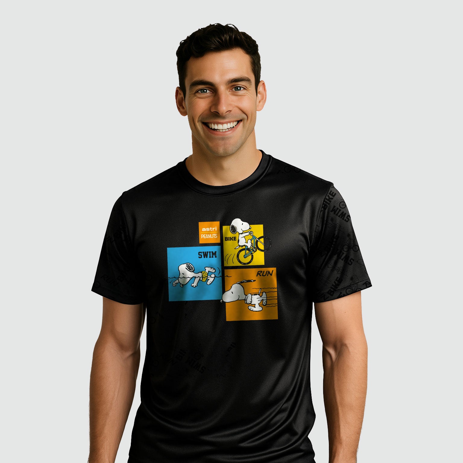 SNOOPY PLAYERA TECH TRIATLON NEGRA CABALLERO